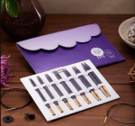 - The beautiful needles in a deep lavender shade are beautifully contained in a striking complementary colored case.