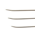 Huck Embroidery Needles are curved at the end and have rounded tips to enable easy manipulation of fabric fibers.