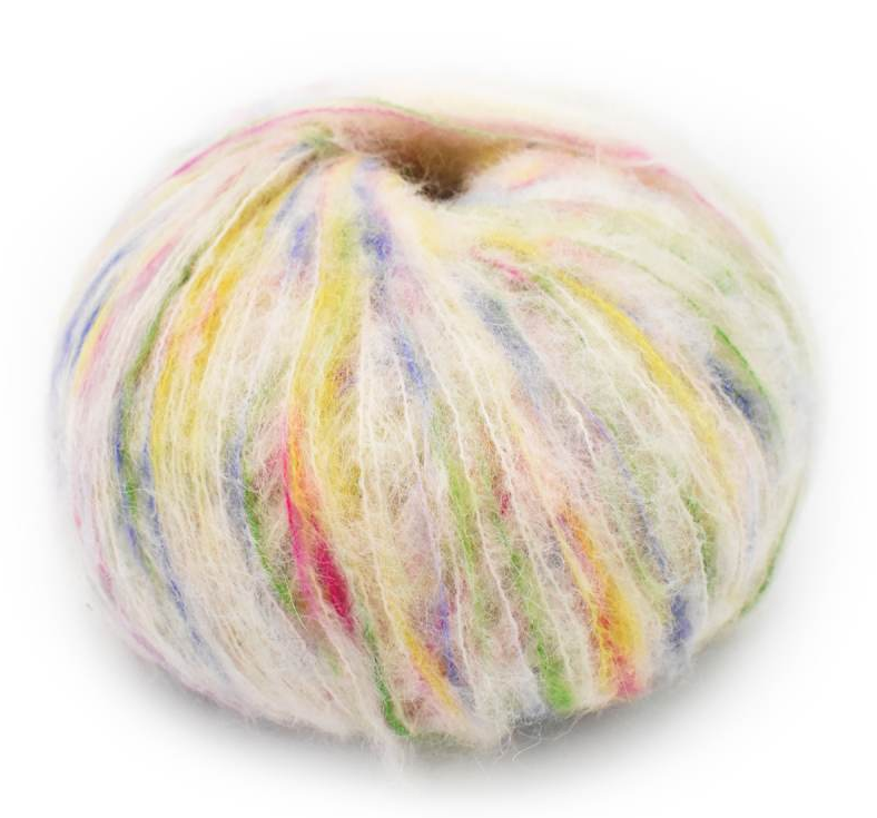 Casita is a harmonious marriage of South American fibers & Italian luxury. This unique blend of Suri Alpaca & Superfine Wool delivers an unparalleled level of quality. Beautiful shades of white are decorated with an array of contrasting color “pops” throughout. It’s a smart way to subtly work color into your wardrobe. Each colorway was carefully crafted to inspire happiness, & fun. This aran weight boasts a generous 437 yards in a 100 grams ball, making it a great fit for garments of all shapes & sizes.